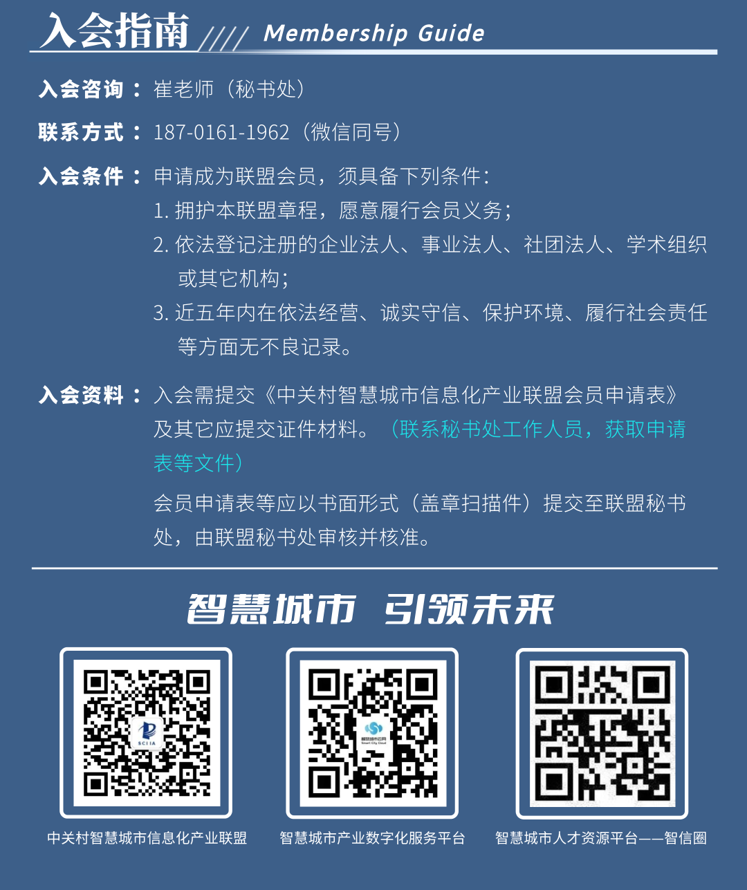 ]article_adlist-->联盟简介 /Profile/ ]article_adlist-->中关村智慧城市信息化产业联盟(ZhongGuanCun Smarter City Information Industry Alliance ,简称SCIIA)是成立于2015年,具有独立法人资格活动地域为全国的4A级社会组织,现有成员单位涵盖国内外智慧城市领域科研、制备、应用、检测和服务等方面的知名机构、大学、企事业单位。联盟主要业务包括——