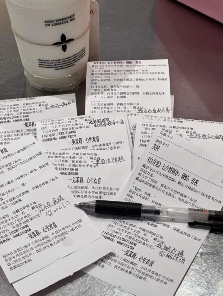 在茉莉奶白,一张原本随手即丢的热敏小票,竟然成了连载《白月光》小说的载体。每章只有短短百来字,却总停在让人心痒的段落。有人为了追更,真的会连续一周走进同一家店——他们追的哪里是剧情,分明是那种“被期待”的参与感。更妙的是,故事在结局处刻意留白,把笔递给了消费者。