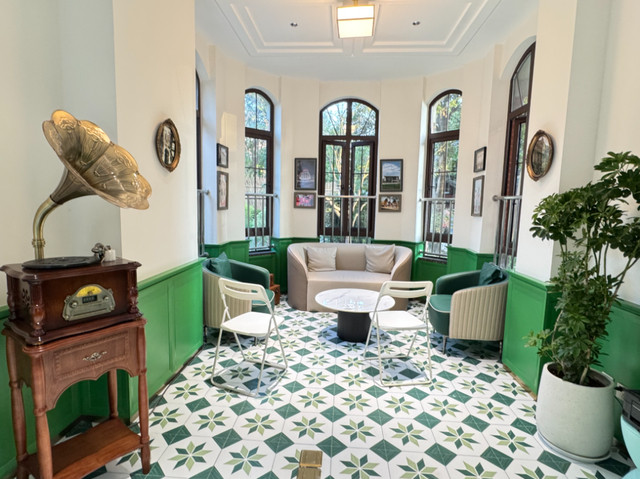 昌平路桥贯通前,我从北往南骑车只能奋力爬坡恒丰路桥,绕道蝴蝶湾公园并不方便,对蝴蝶湾区域深厚的人文底蕴并不了解。后数次造访康定东路85号石门二路街道党群服务中心,一幢安妮女王复兴样式的独立别墅,楼梯宽绰,地板铮亮,采光极好,三楼顶层有七八位社区居民正沐浴着阳光练操,印象很深。后来才得知,这幢建于清末的老洋房,是女作家张爱玲的出生地,她曾两度入住。